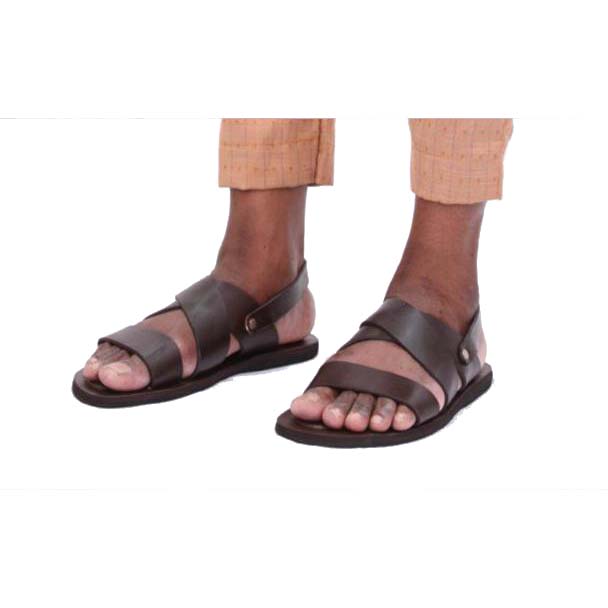 Sandales réalisées avec la matière en cuir marron et noir pour homme