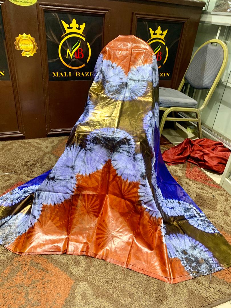 BAZIN RICHE Motif Attaché 4 côté Orange et Bleu Polmane