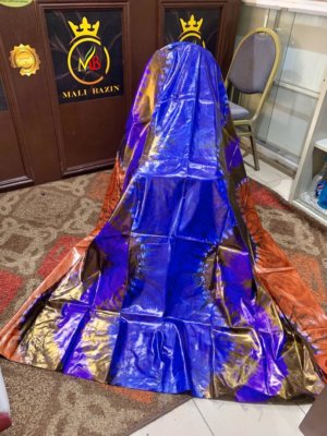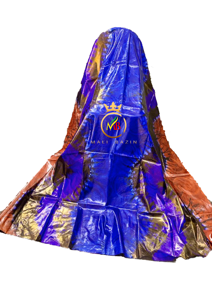 Le Mètre de Bazin Riche Motif Attaché Serpent Bleu Polmane & Orange