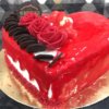 Offrez-lui pour la Saint Valentin ce gâteau en forme de cœur rouge décoré 3 fleures composez de :