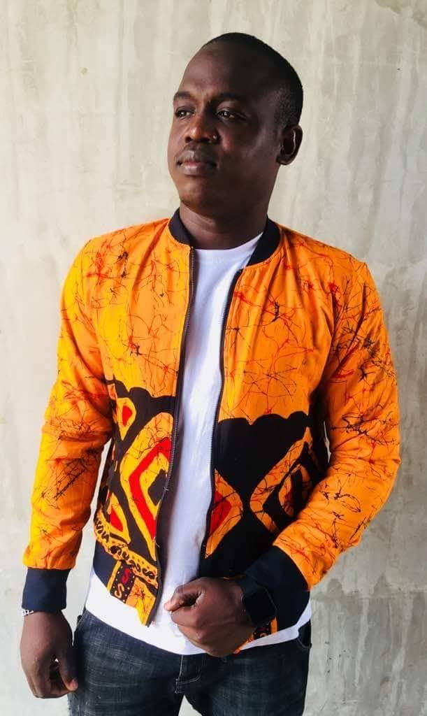 Blouson homme orange stylé en mode bogolan