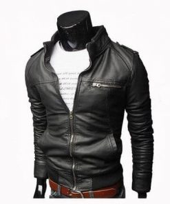 Blousons cuir synthétique polyuréthane pour hommes col montant manteau  décontracté Slim idéale pour vos styles urbain, motard et professionnel.Avec son intérieur doubler il offre la chaleur nécessaire en période de fraicheur .
