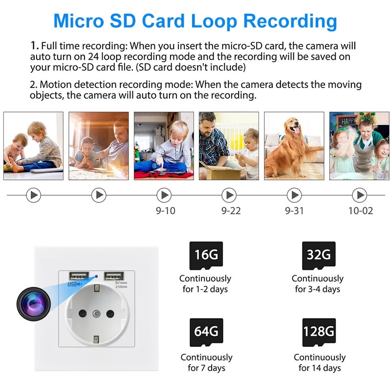 4.Mini caméra furtive: personne ne remarquera cette caméra à prise murale. Voir ce qui se passe sous la caméra où que vous soyez, il suffit de télécharger l’application mobile