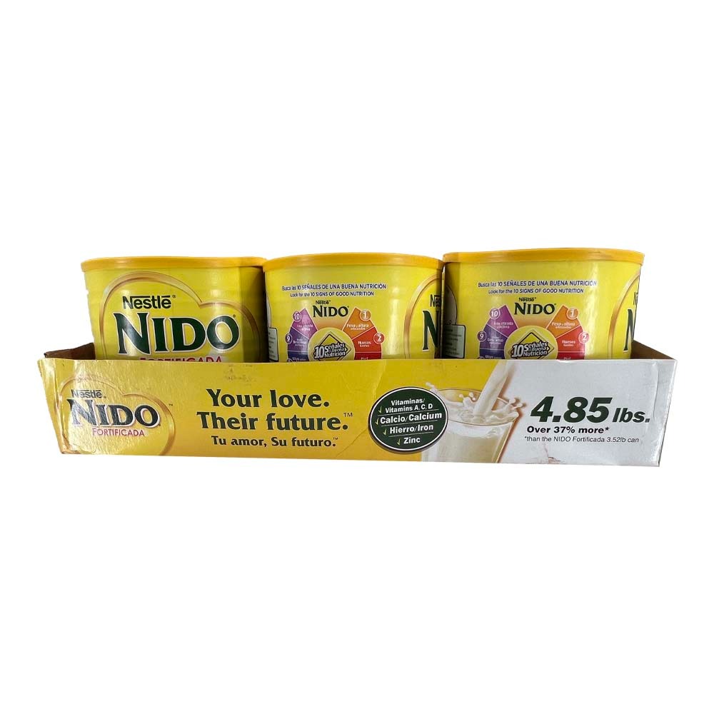 - Une boîte de 4,85 livres (environ 73 portions) de Nestle NIDO Fortificada Dry Whole Milk Powdered Drink Mix. Article EBT dans les États éligibles