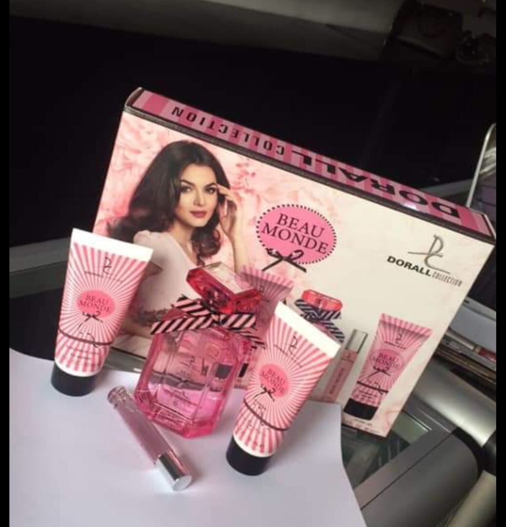 Un coffret composé de parfum de poche, gel de douche, lotion idéal pour voyager et être offert en cadeau .