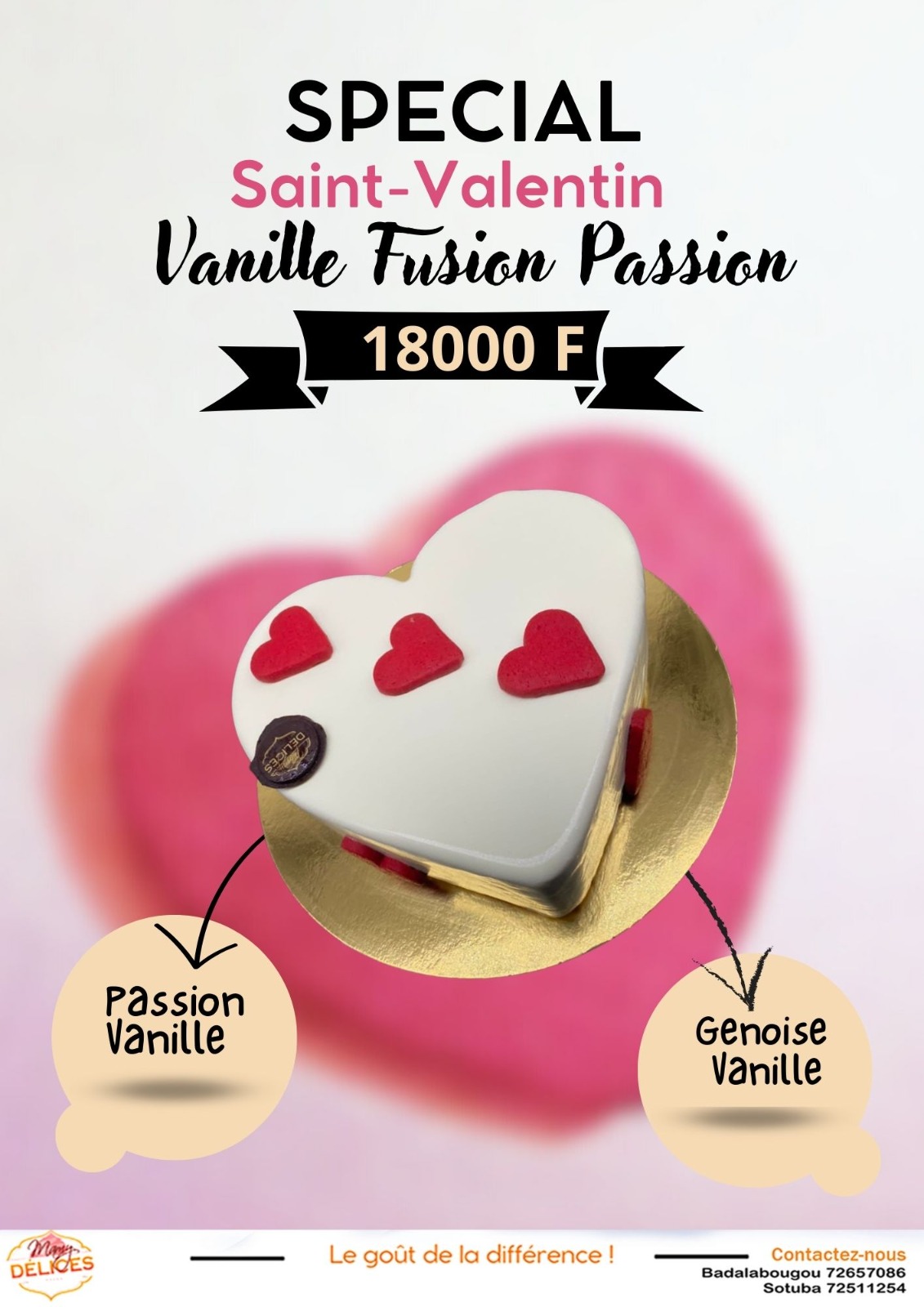 Le gâteau Vanille Fusion Passion pour la Saint-Valentin est l’expression ultime de l’amour en forme de coeur. Ce délicieux gâteau est composé de deux couches de génoise vanille fondante en bouche et d’une crème vanille parfumée à la passion, un mélange parfait pour faire battre votre coeur. Ce gâteau est un cadeau idéal pour votre bien-aimé(e) le jour de la Saint-Valentin. Il sera certainement apprécié et marquera l’occasion pour toujours. Alors, surprenez votre moitié avec ce gâteau Vanille Fusion Passion pour une Saint-Valentin inoubliable.
