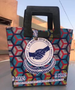 SAC 8 MARS personnalisé avec des manches rectangulaires Noires avec wax pour valoriser la femme la sœur la maman la fille africaine .Une idée génial de cadeau pour montrer votre reconnaissance et amour .