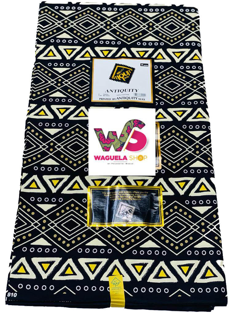 Sublimez avec ce wax de la marque Antiquity à la mode Bogolan de couleur Noir orné de motif jaune et blanc .ce wax est idéal pour être offert en cadeau ou pour être portée dans les grand cérémonies. Facilement personnalisable il pourra se marier avec tous vos styles tout en gardant une authenticité africaine.