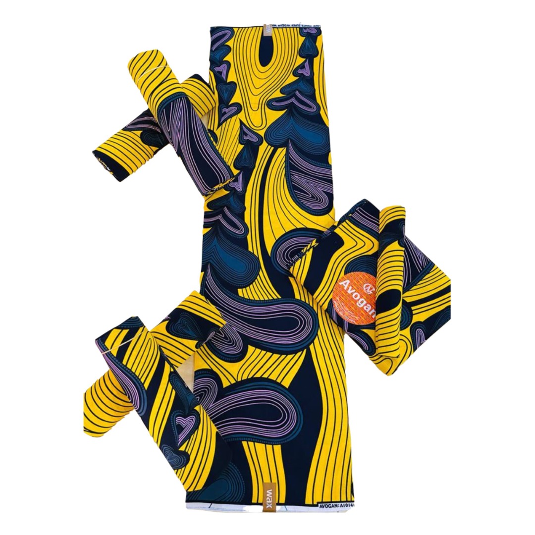 Wax Avogan – Jaune avec motifs bleus